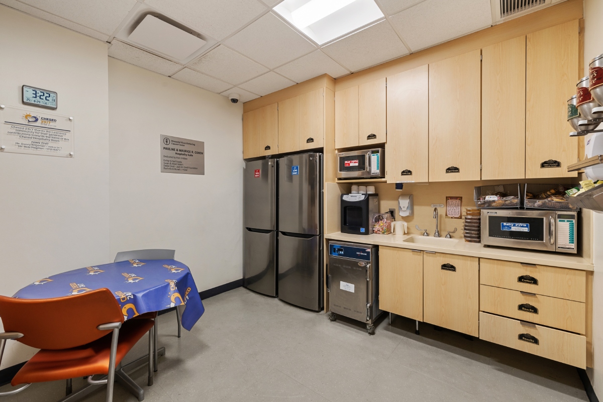 Chesed Rooms. Hospitality rooms stocked with fresh coffee, soup, Shabbos & Yom‑Tov essentials, and a quiet corner to regroup.