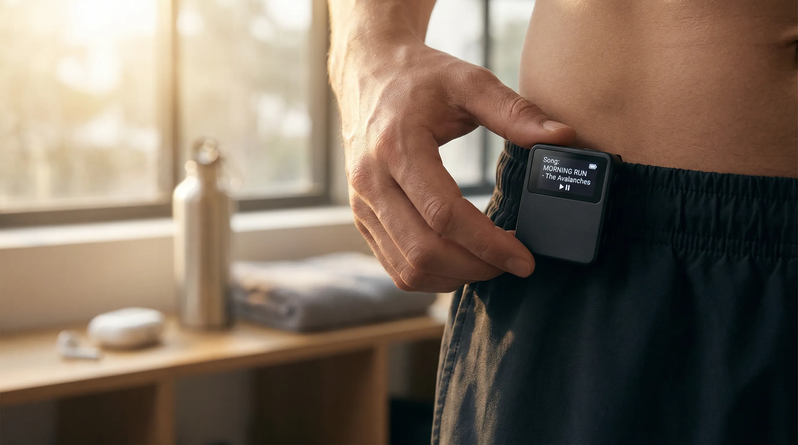A small MP3 player fills that gap perfectly. No browser. No app store. No social media rabbit holes. Just your music library, ready to go.