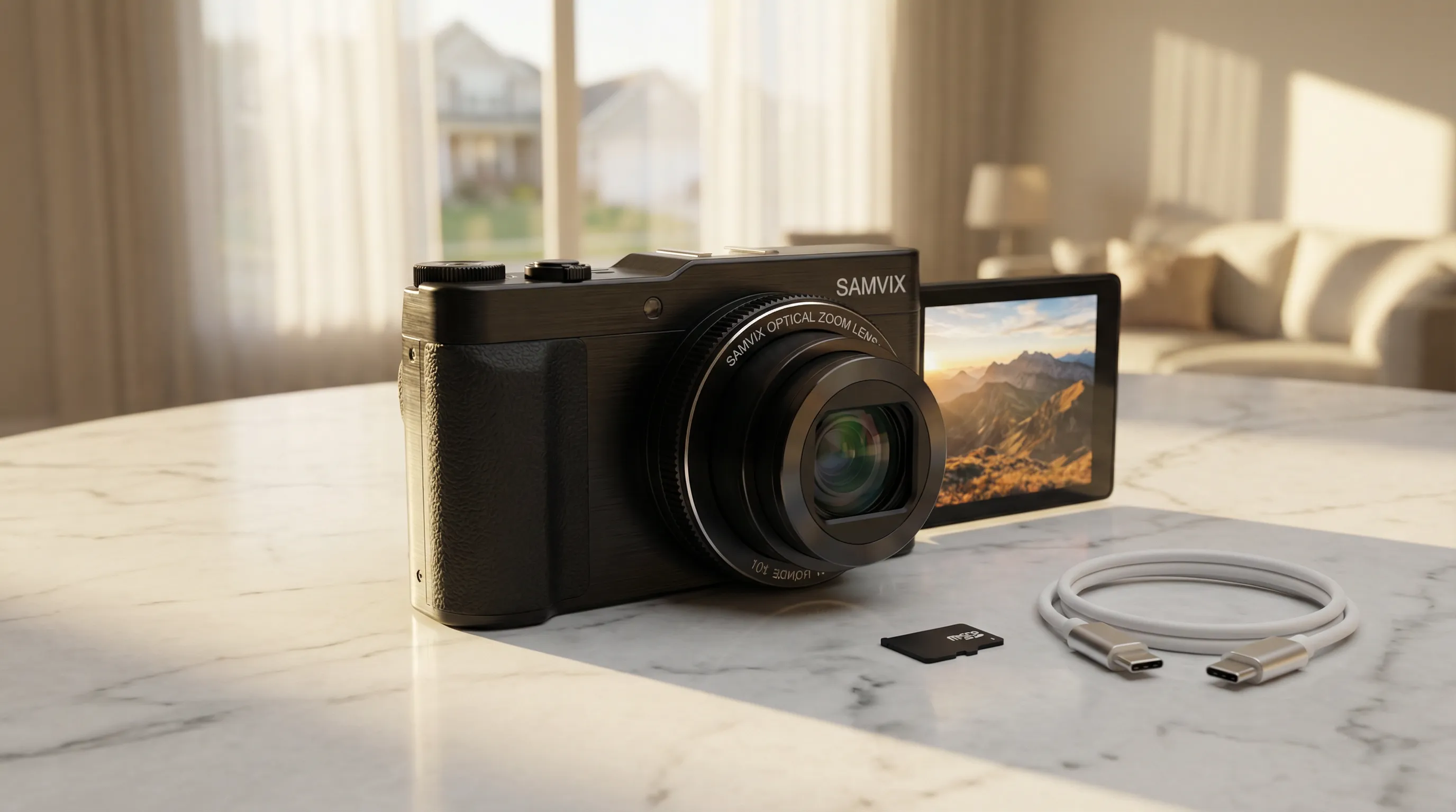 A Samvix camera is a compact digital camera with Wi-Fi and Bluetooth physically removed from the hardware—not just disabled. It offers real optical zoom, image stabilization, and up to 5K video while keeping all photos stored locally. This makes it ideal for anyone who needs a connectivity-free camera for community standards, kids, or distraction-free photography.