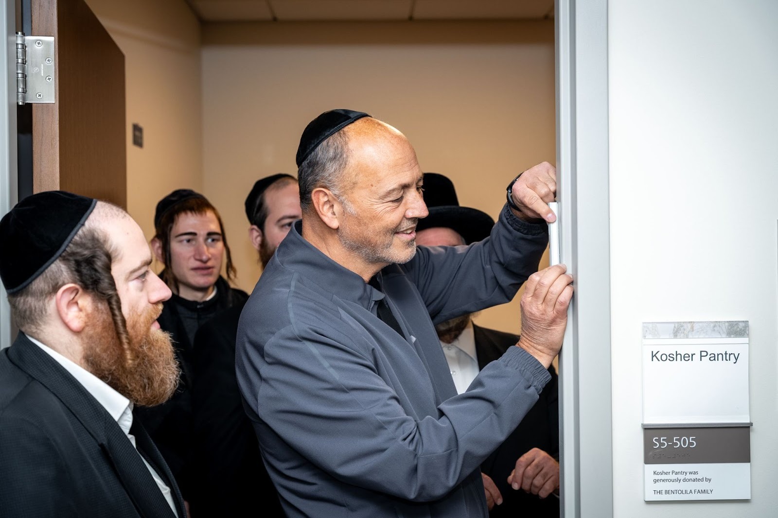 Chesed 24/7 has maintained a dedicated hospitality room on the hospital campus, a space stocked with kosher food, beverages, seating, and basic supplies that families can access 24/7 during medical stays. The centerpiece of the ceremony was a kviat mezuzah, the formal affixing of a mezuzah to the doorpost of the Chesed room. The kviat mezuzah at Valley Hospital was performed with the appropriate blessings, attended by Chaplain Mason Jenkins, hospital leadership, Chesed 24/7 staff, and community members.