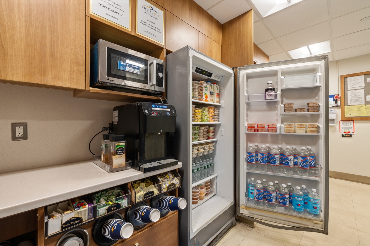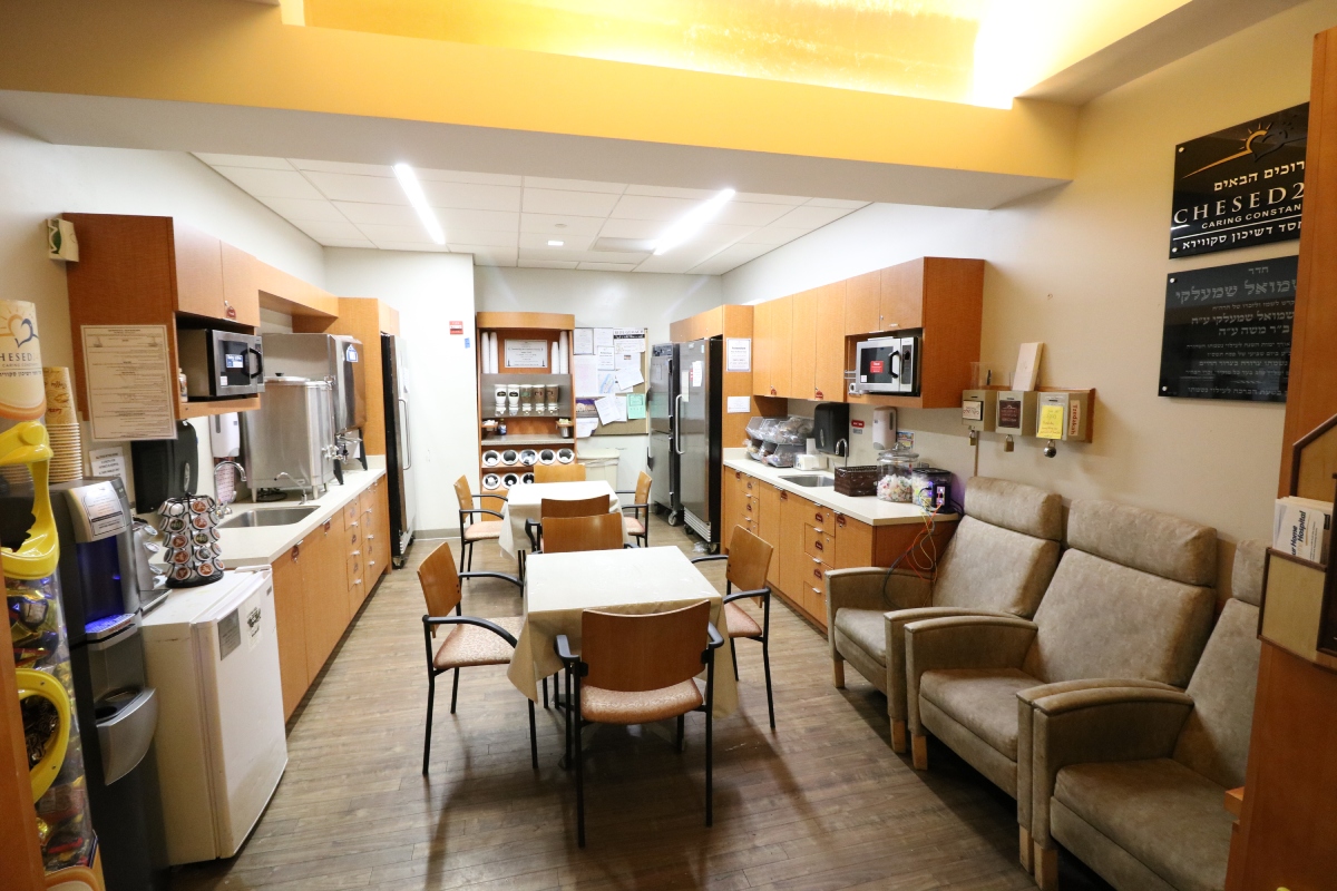 Chesed Rooms are funded entirely by the community. Every snack, drink, refrigerator, table, and chair is there because someone cared enough to give.